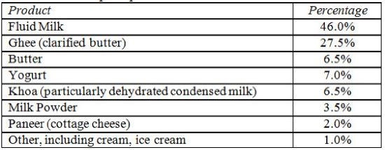 the total milk production in the country, about 48% milk is either consumed at