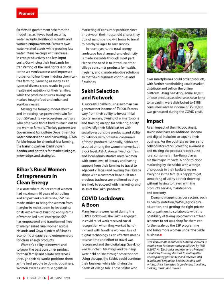 In recent years, the rural energy landscape has changed, and electricity is made available through most part. Hence the need is to introduce other village consumer products for health, hygiene, and climate adaptive solutions so that Sakhi business continues and flourishes.